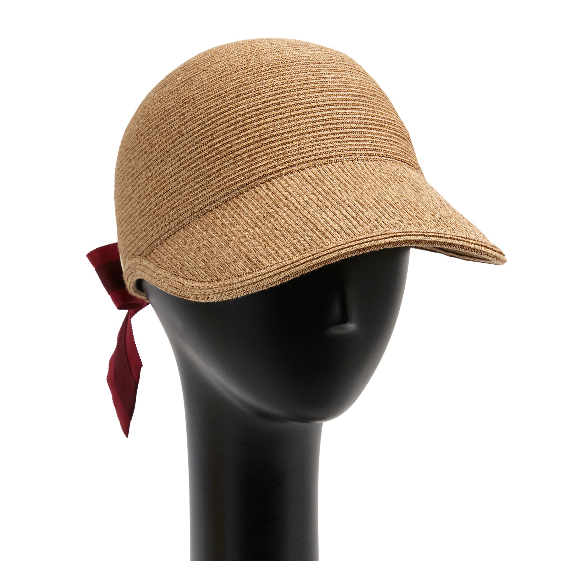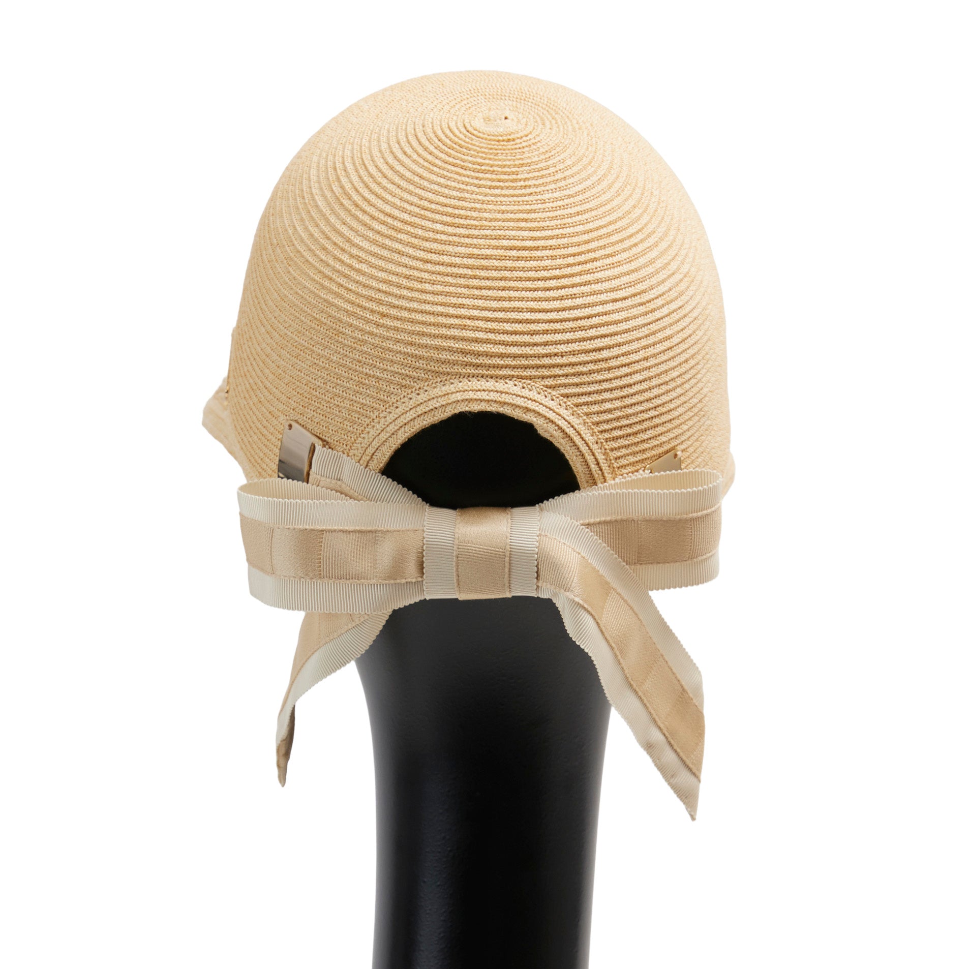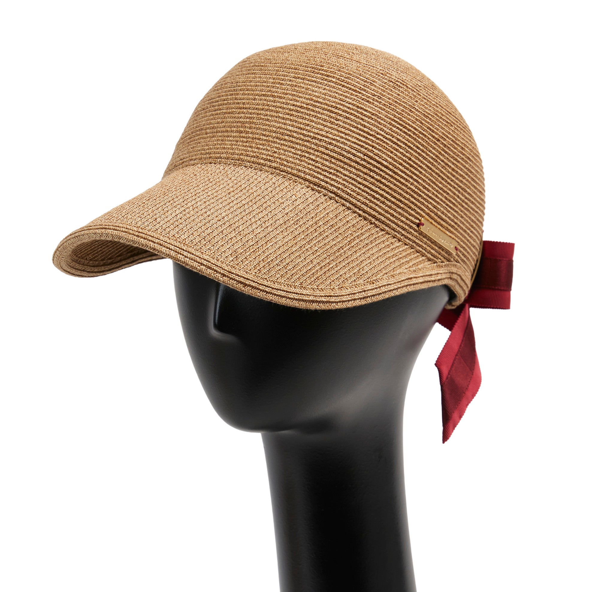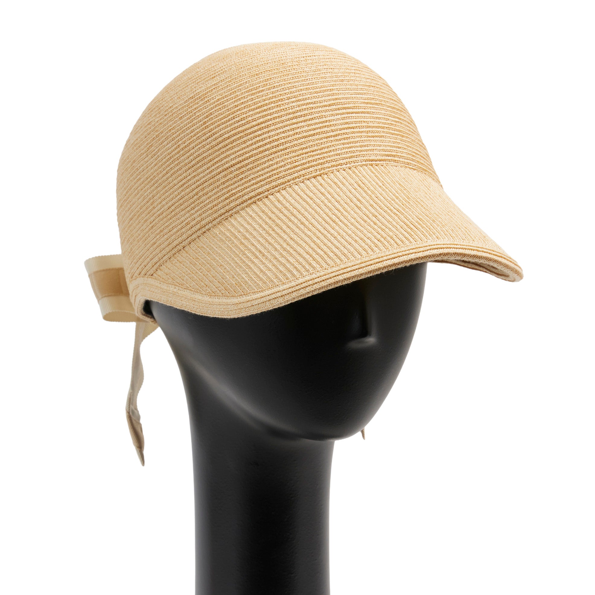 後頭部の金具に2種類のリボンを重ねて通してリボン結びにしたデザインのキャップ、Janet:ジャネットは今年で4年目を迎えます。ヤングカジュアルになりがちなキャップ型の帽子が、ゴールドの金具と艶のあるリボンで "Athena New York" らしい大人ラグジュアリーなキャップ帽に仕上がっています。髪を後ろでまとめた際、ラウンドカットした部分から髪を出すことができます。今季はNewカラーは3色です!