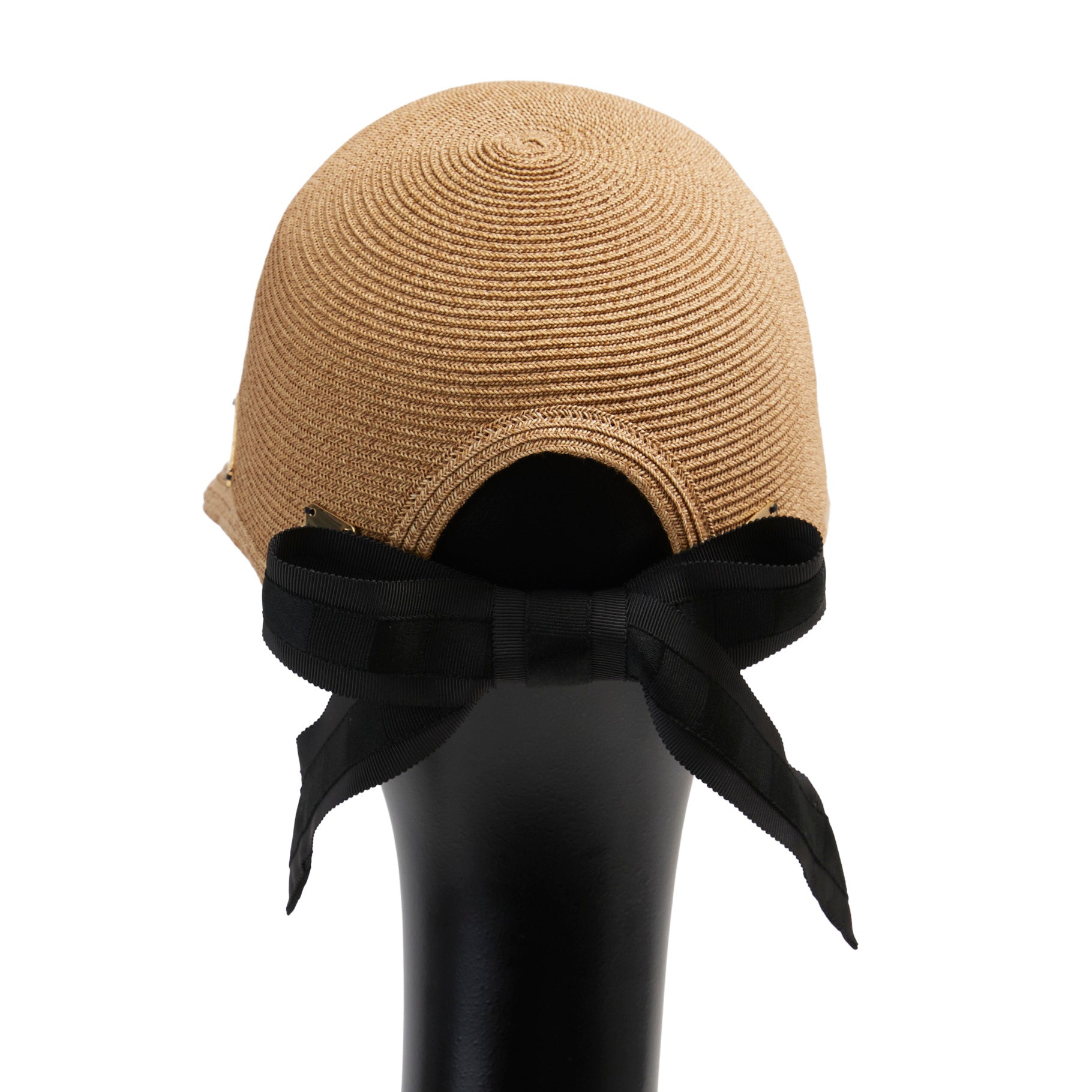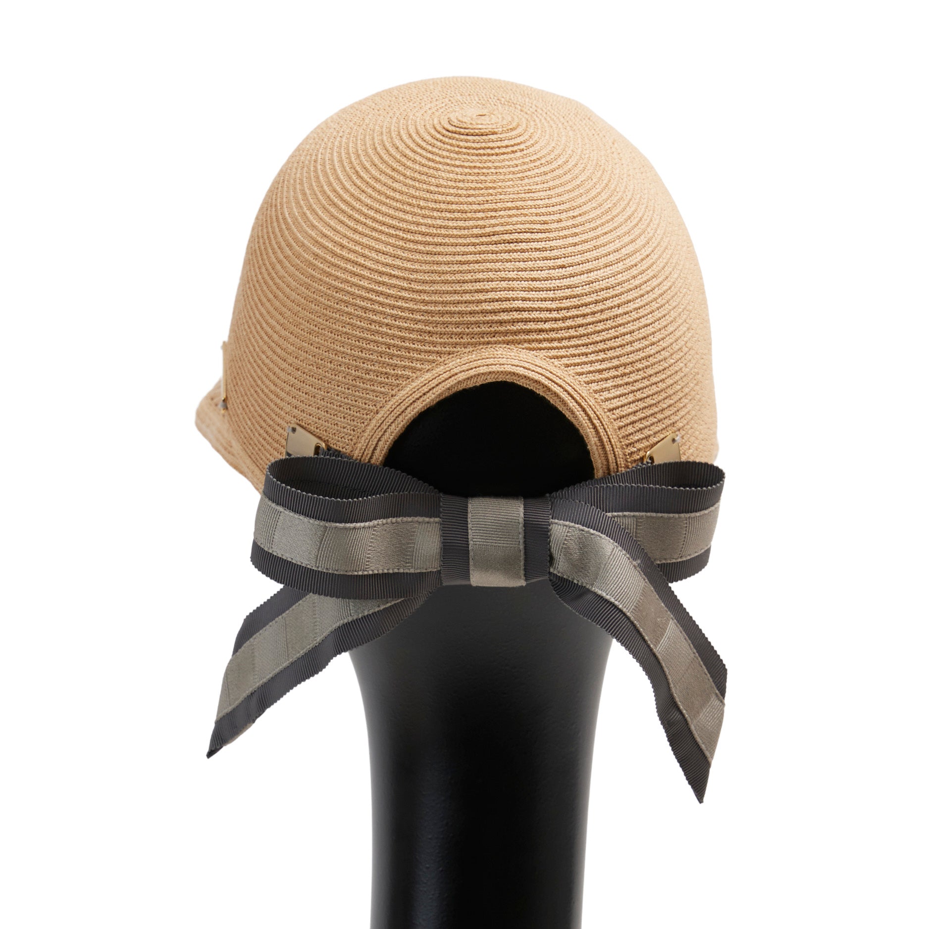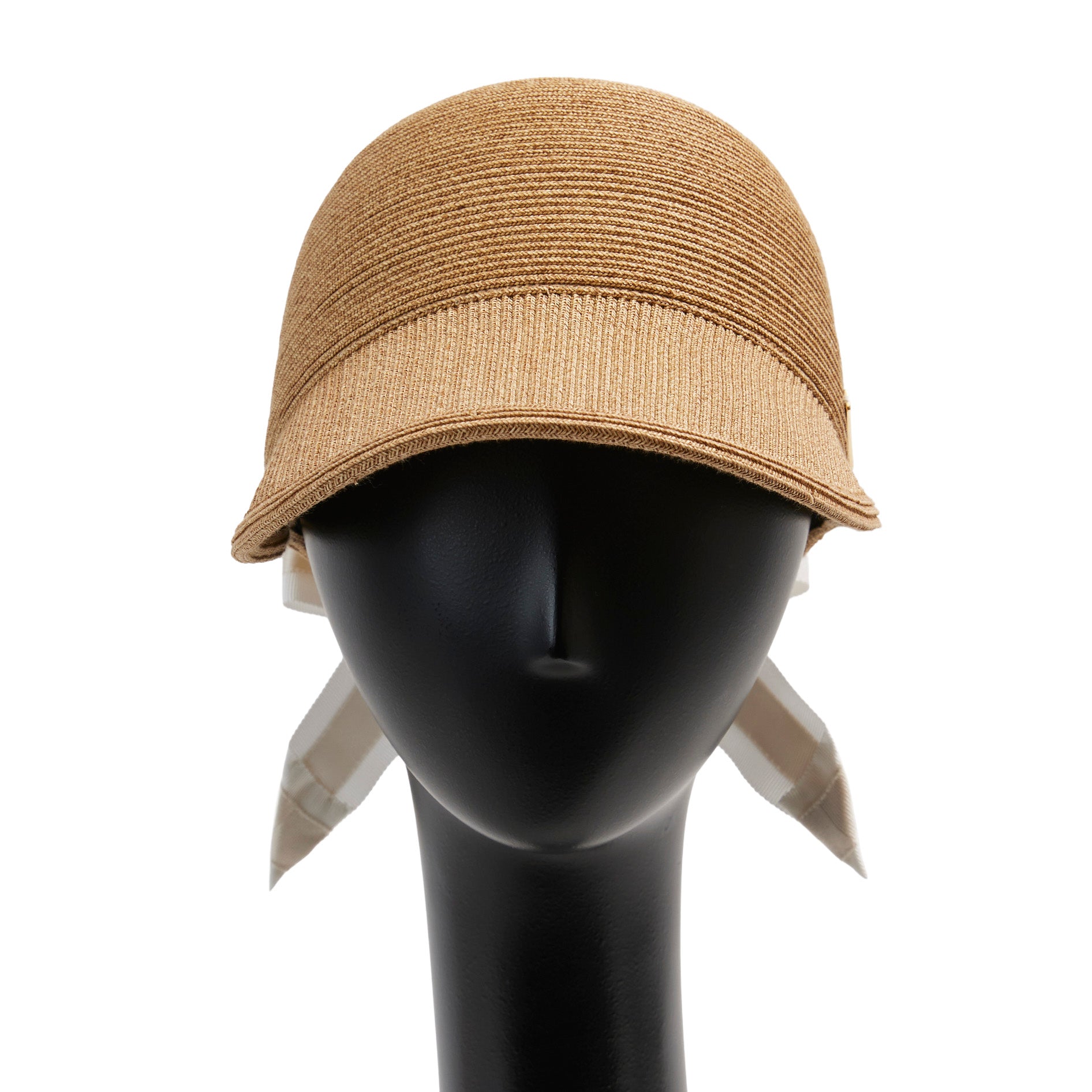 後頭部の金具に2種類のリボンを重ねて通してリボン結びにしたデザインのキャップ、Janet:ジャネットは今年で4年目を迎えます。ヤングカジュアルになりがちなキャップ型の帽子が、ゴールドの金具と艶のあるリボンで "Athena New York" らしい大人ラグジュアリーなキャップ帽に仕上がっています。髪を後ろでまとめた際、ラウンドカットした部分から髪を出すことができます。今季はNewカラーは3色です!