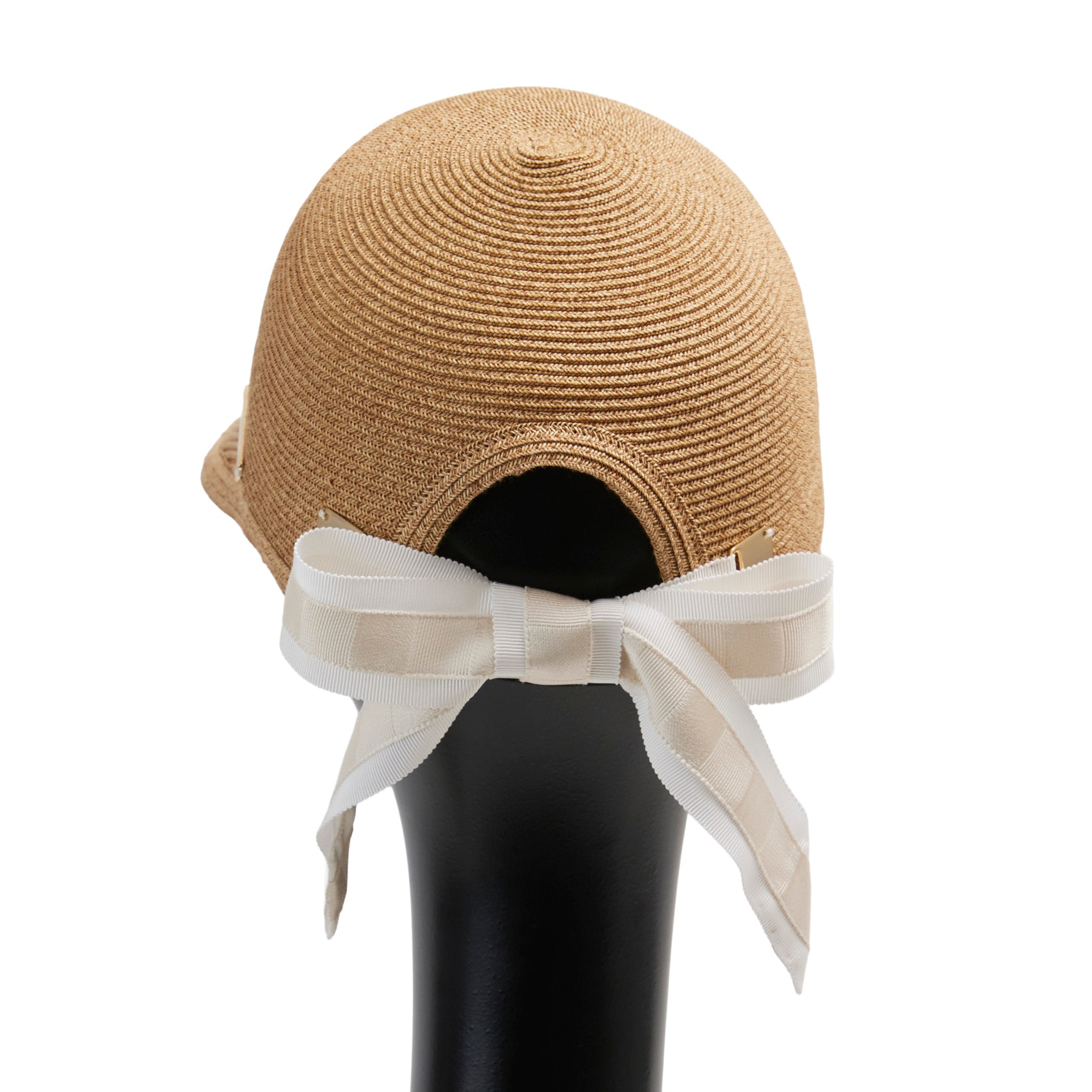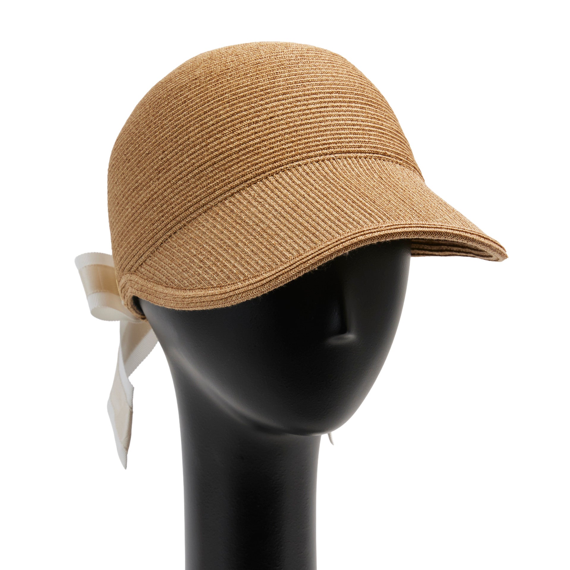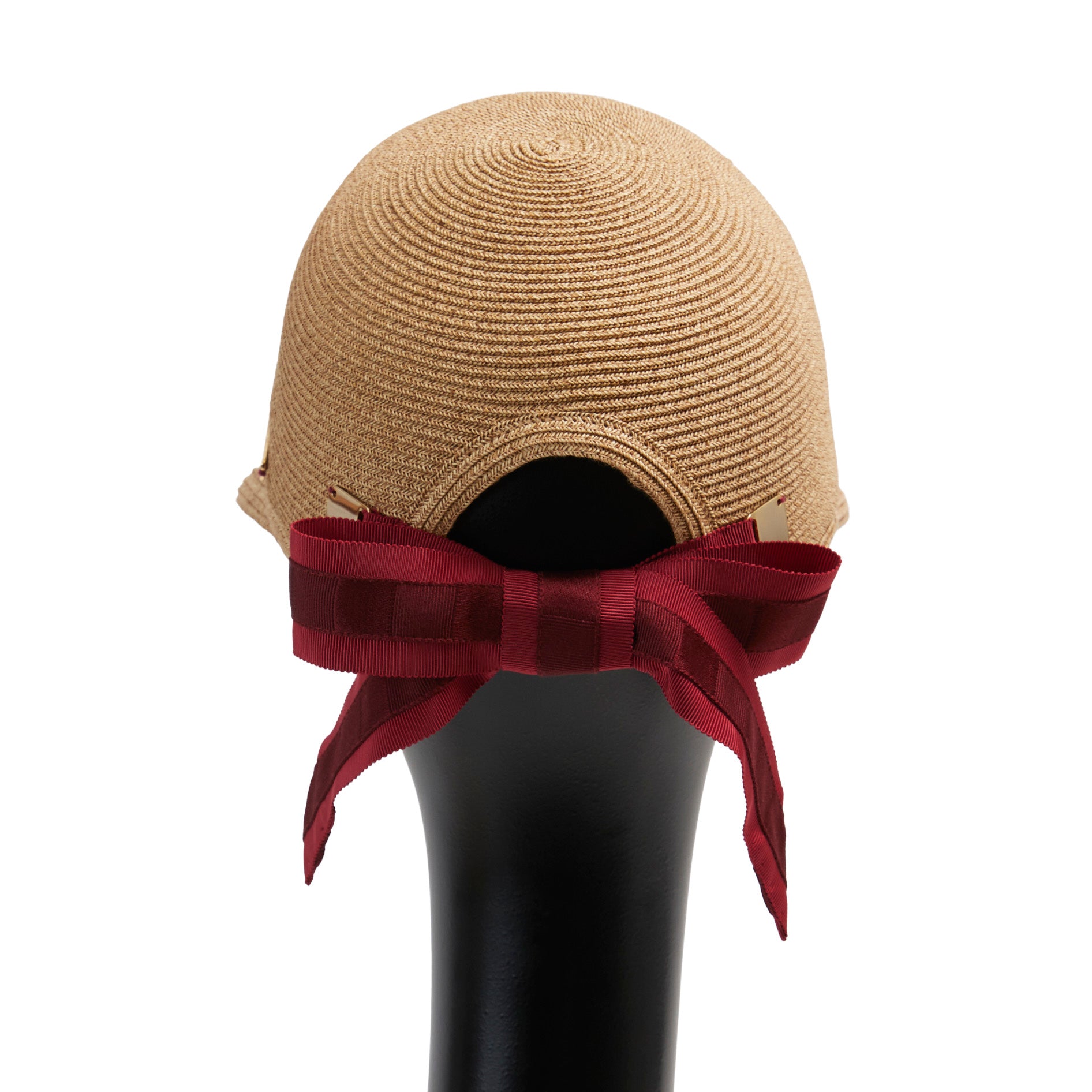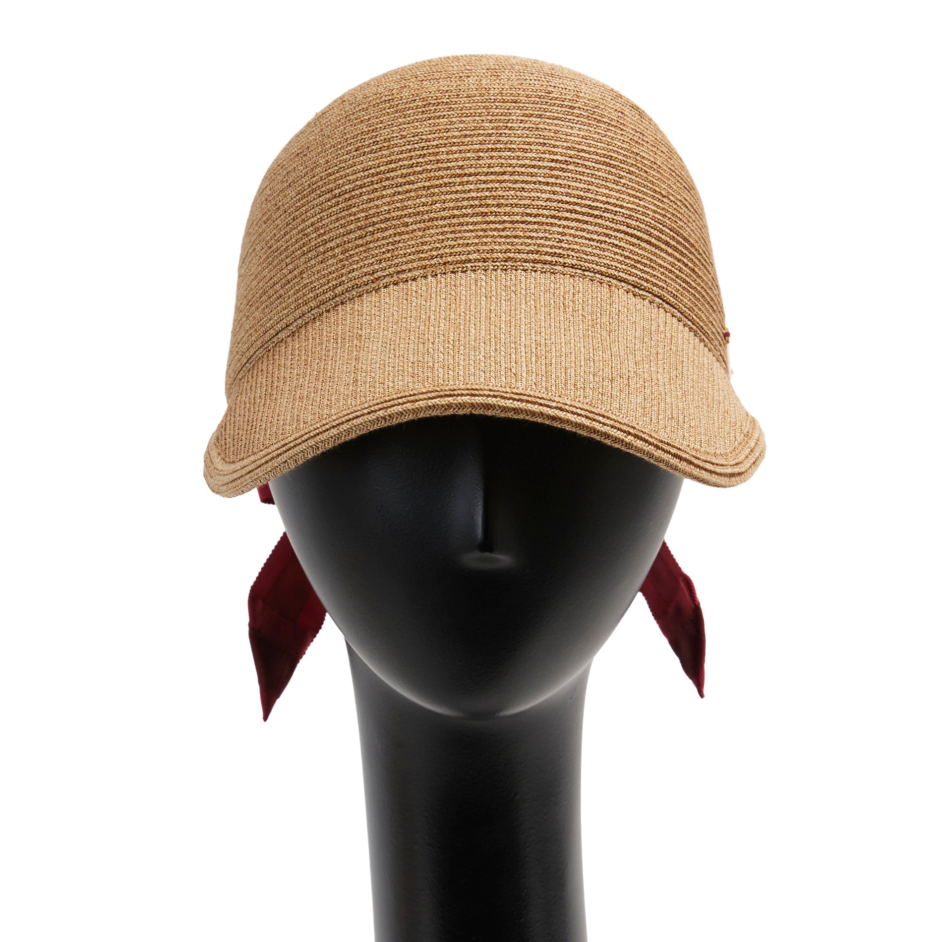後頭部の金具に2種類のリボンを重ねて通してリボン結びにしたデザインのキャップ、Janet:ジャネットは今年で4年目を迎えます。ヤングカジュアルになりがちなキャップ型の帽子が、ゴールドの金具と艶のあるリボンで "Athena New York" らしい大人ラグジュアリーなキャップ帽に仕上がっています。髪を後ろでまとめた際、ラウンドカットした部分から髪を出すことができます。今季はNewカラーは3色です!