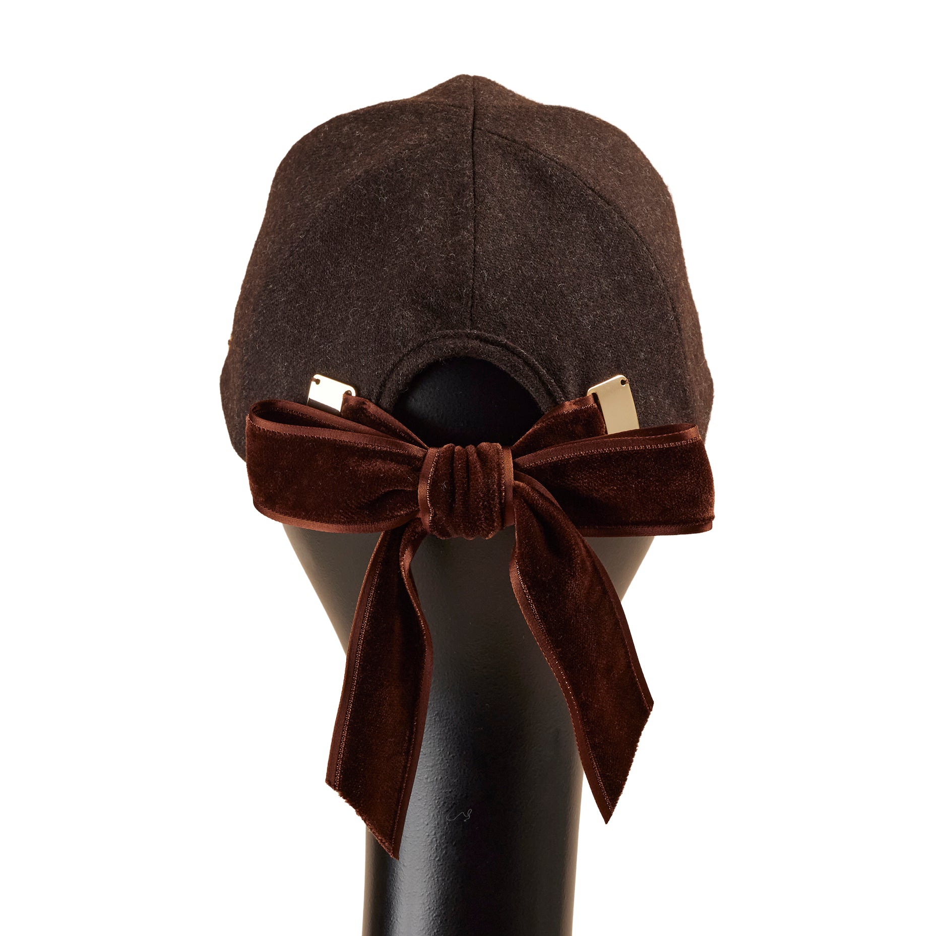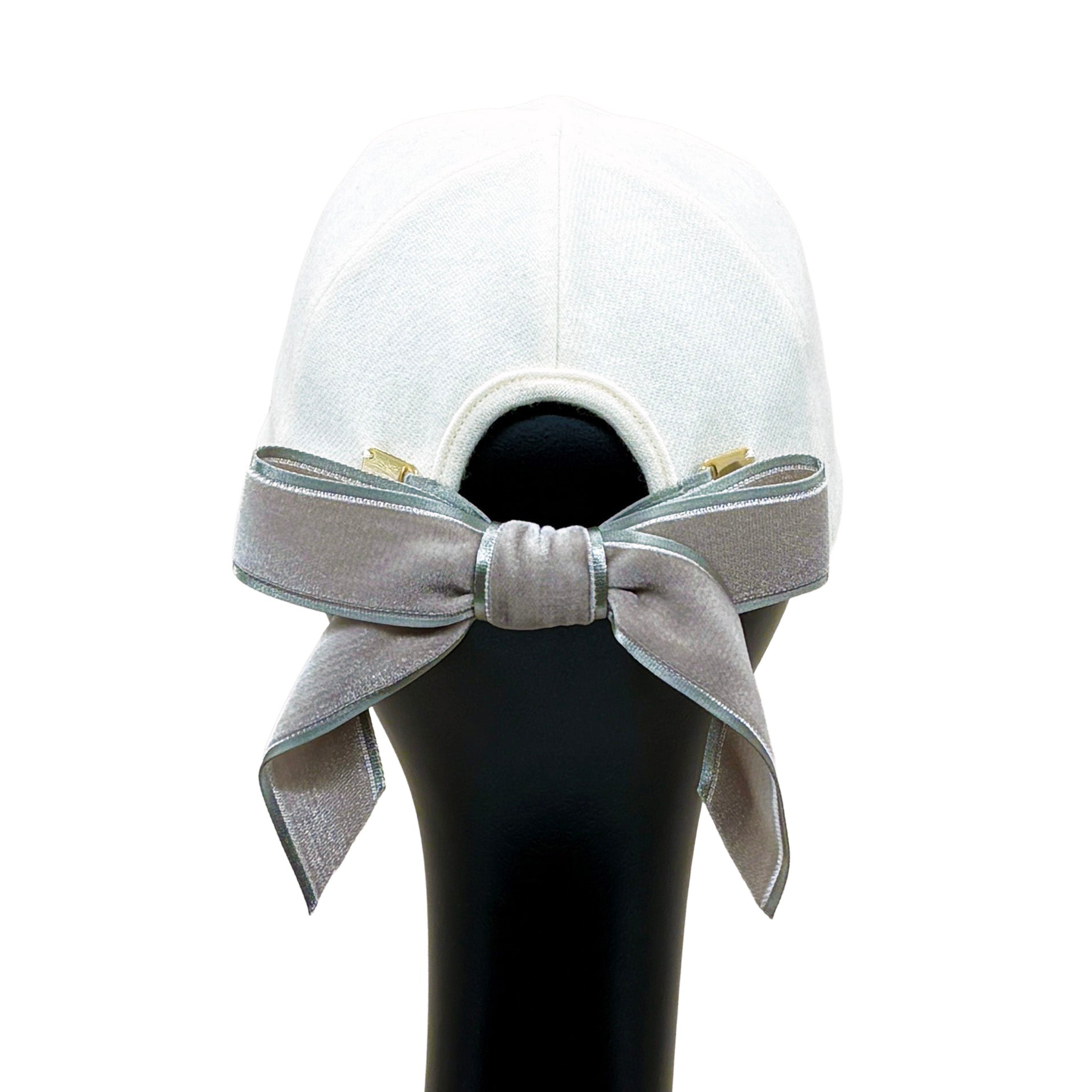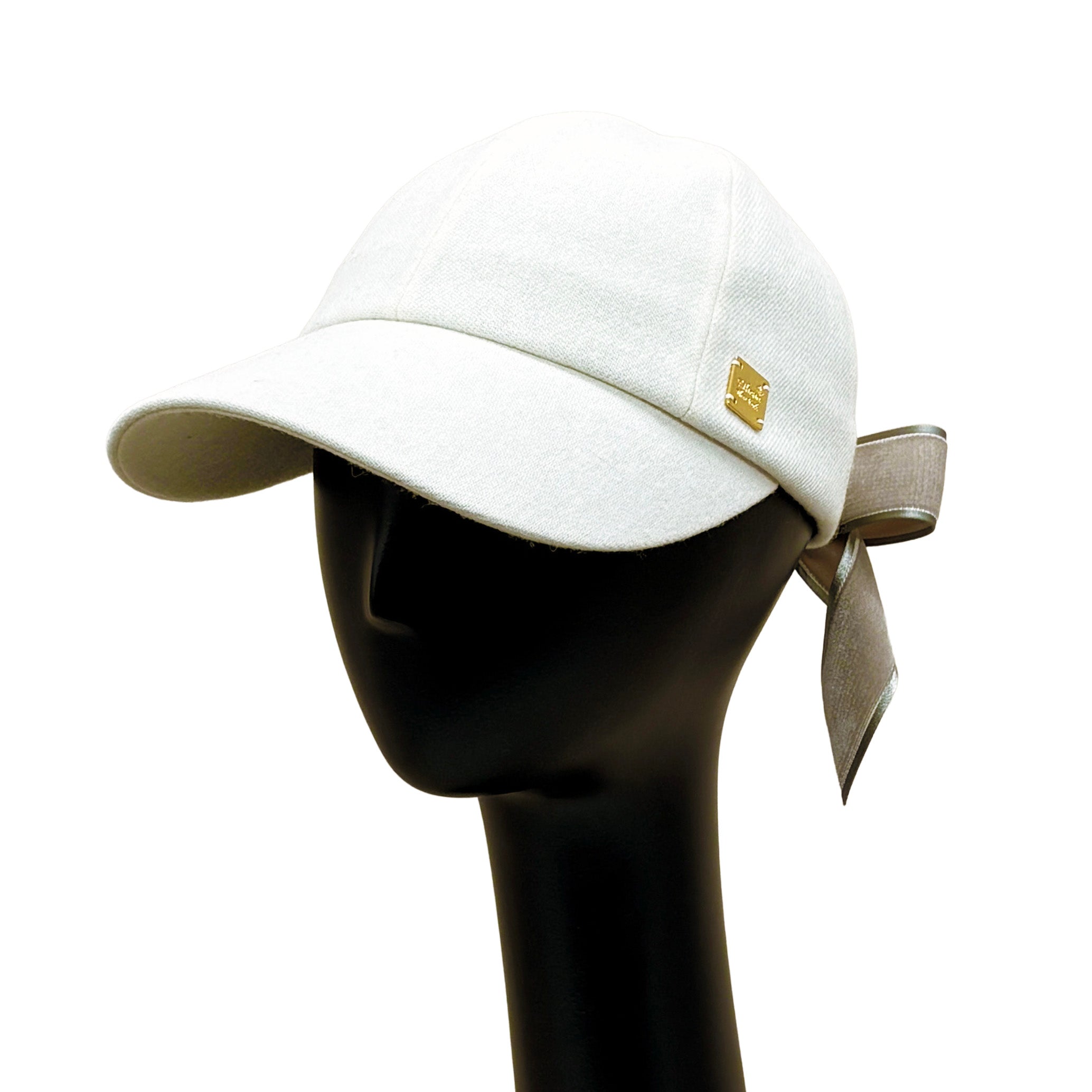 春夏の帽子で人気NO.1の 帽子:Janet (キャップ)の秋冬バージョン。後頭部のラウンドカットされた両サイドに、Athena New Yorkオリジナルで製作した存在感と高級感のある『ゴールドの金具』をアタッチ。この金具にリボンを通してリボン結びに。リボン装飾の内側にゴムが渡っているので自然と頭にフィットします。ヤングカジュアルになりがちなキャップ型の帽子を、『ゴールドの金具』とボリュームのある柔らかいリボンで、大人ラグジュアリーなキャップスタイルを演出。
