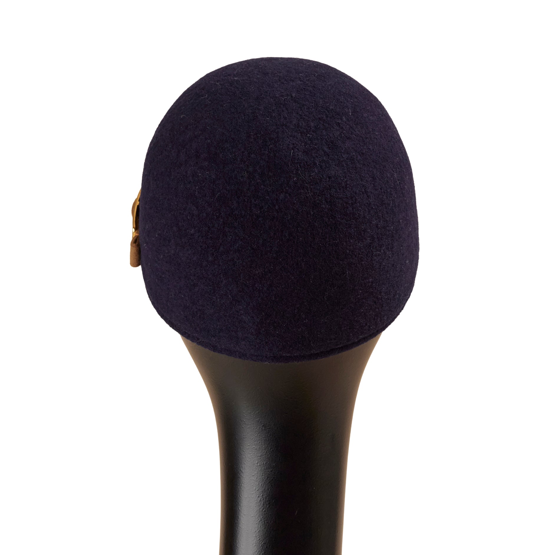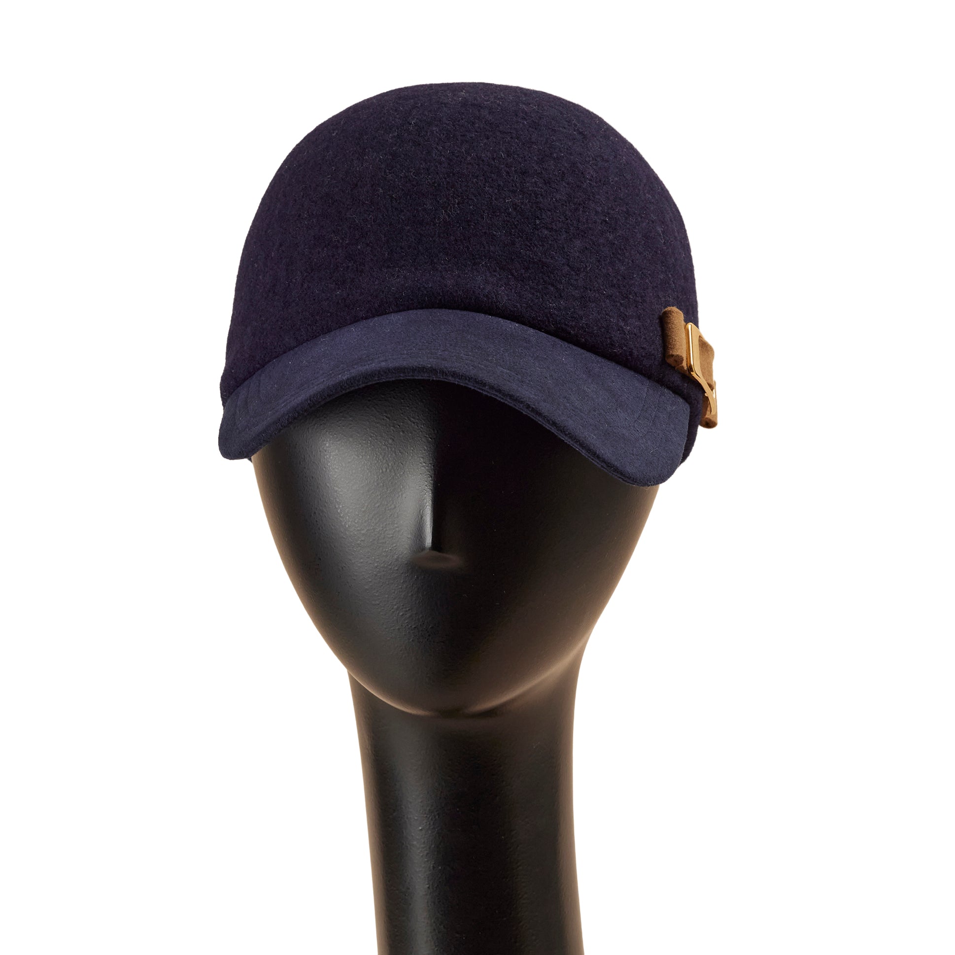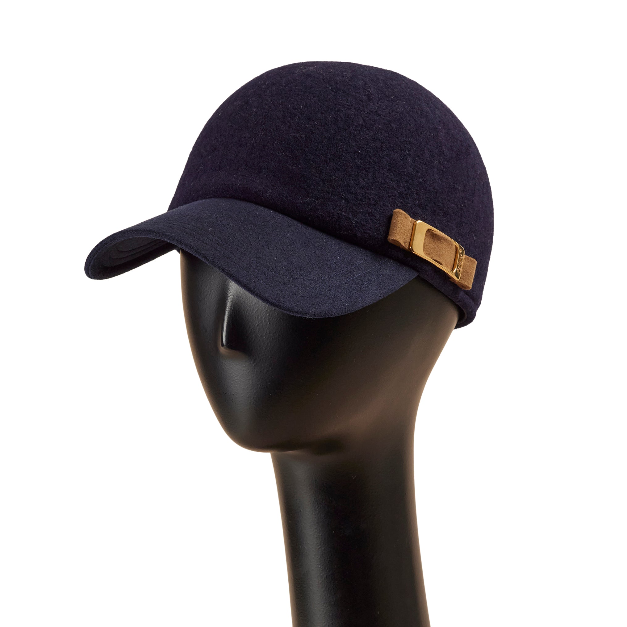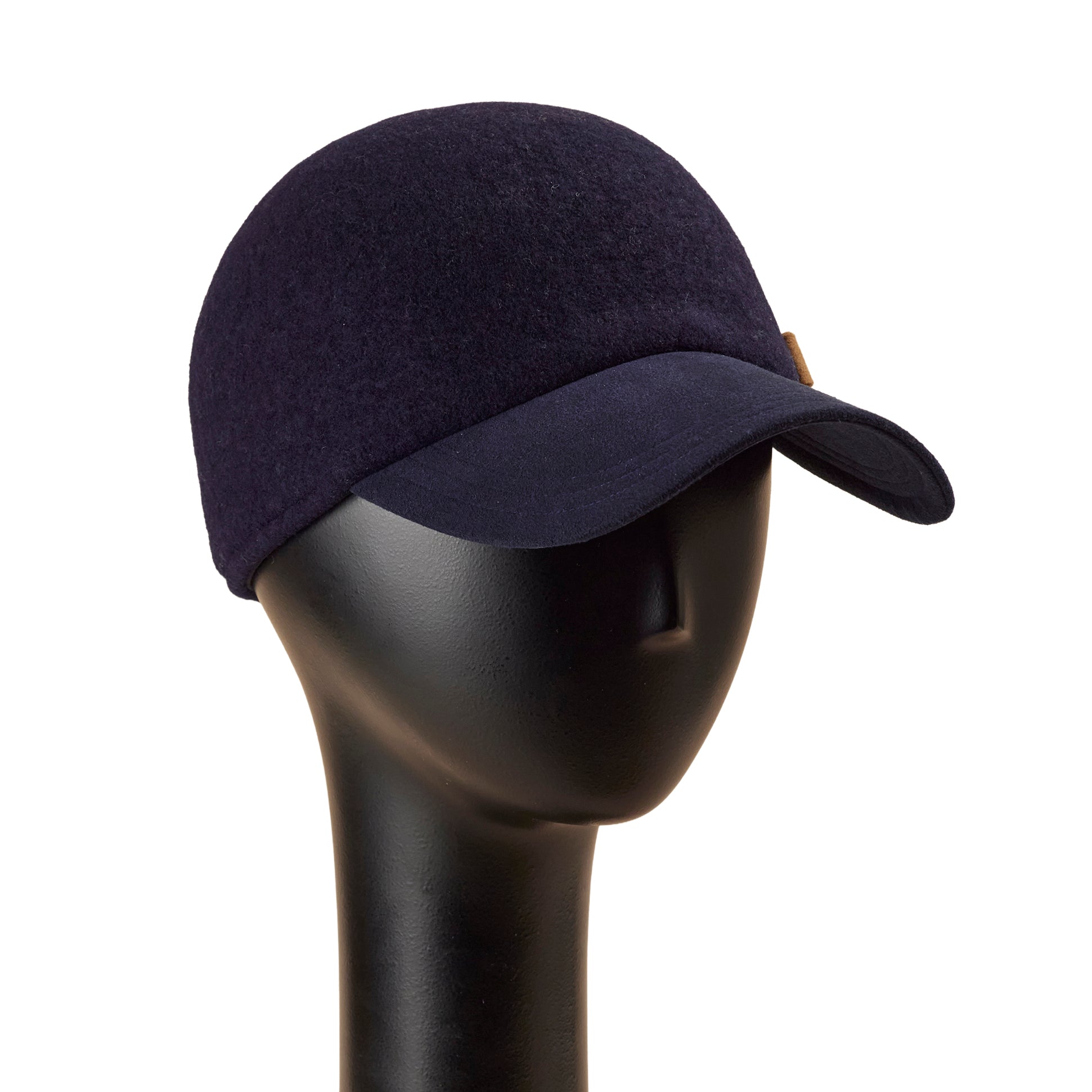 頭部分を縫い目のない1枚のフェルト調の生地で製作した、今季Newデザインのキャップ型帽子です。縫い目が無いので触りがなめらかで、自然と頭にフィットする、とても被り心地の良いキャップです。ブリム(つば)は、マットなベルベット調の生地を使い、大人上品な仕上がりに。左側面のブランドチャームには、型押しで使った帽子生地から出た部分を、装飾としてデザインしています。