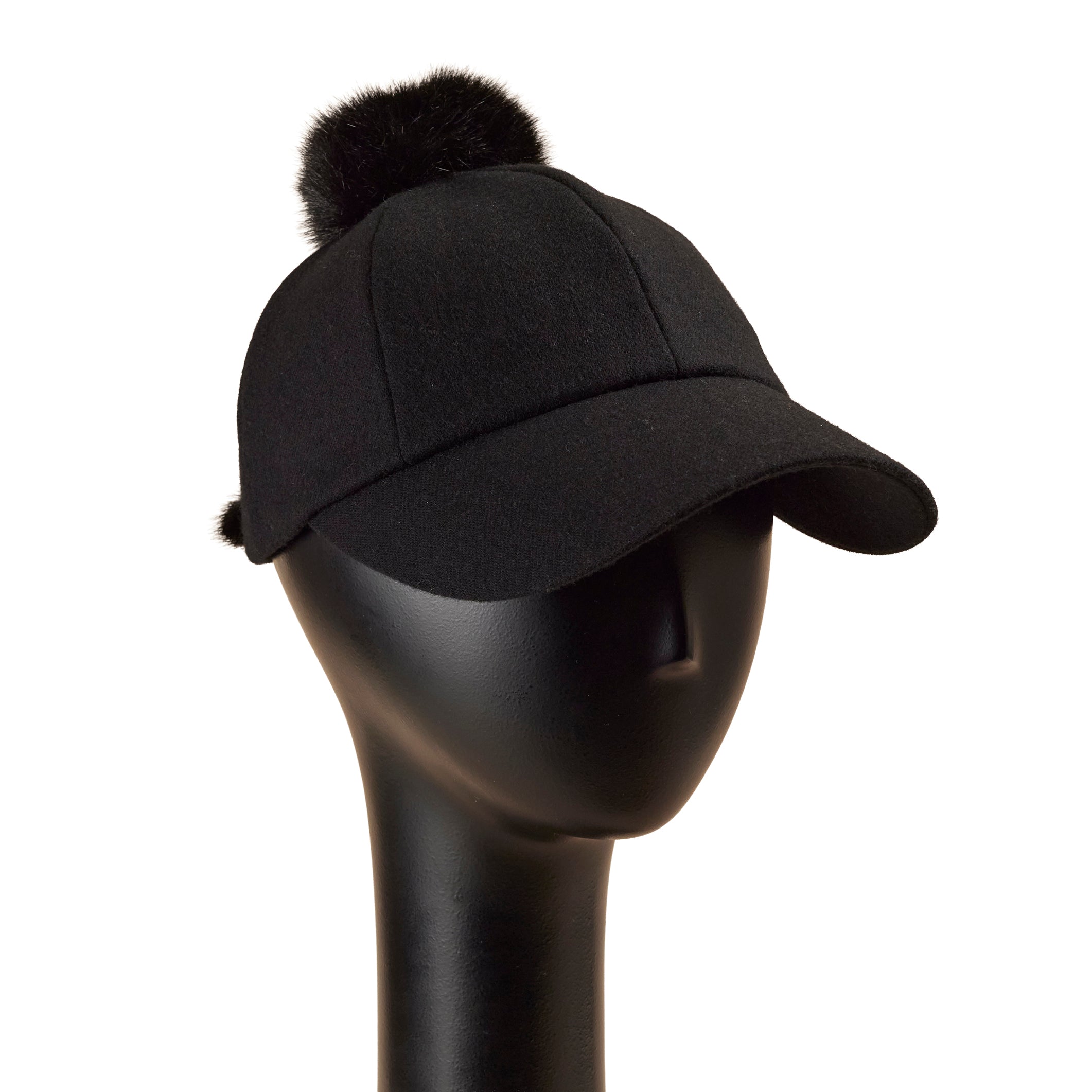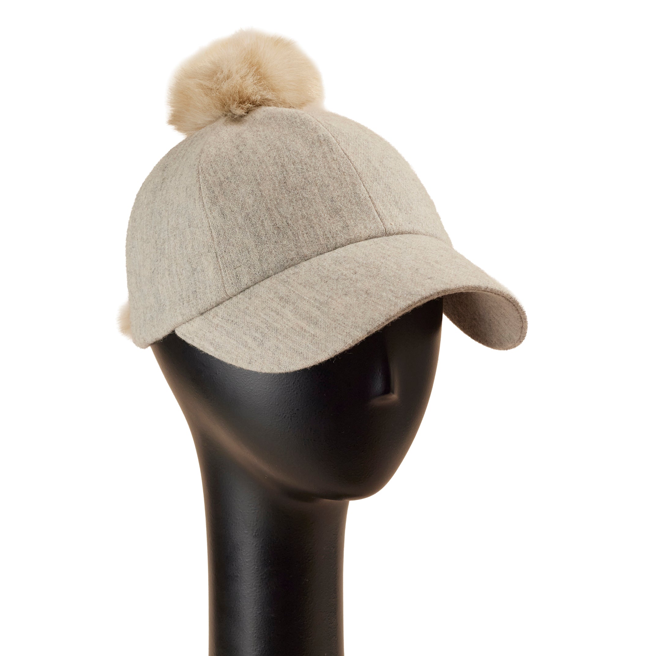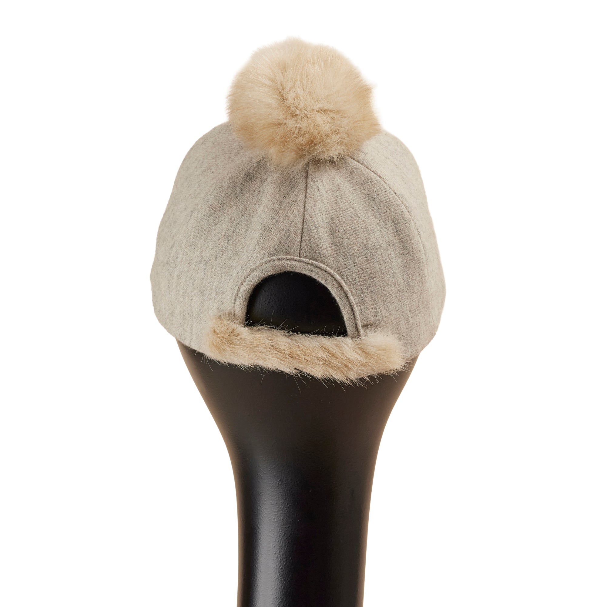 トップと後頭部にファーをあしらった、少しカジュアルなデザインのキャップ型帽子。
