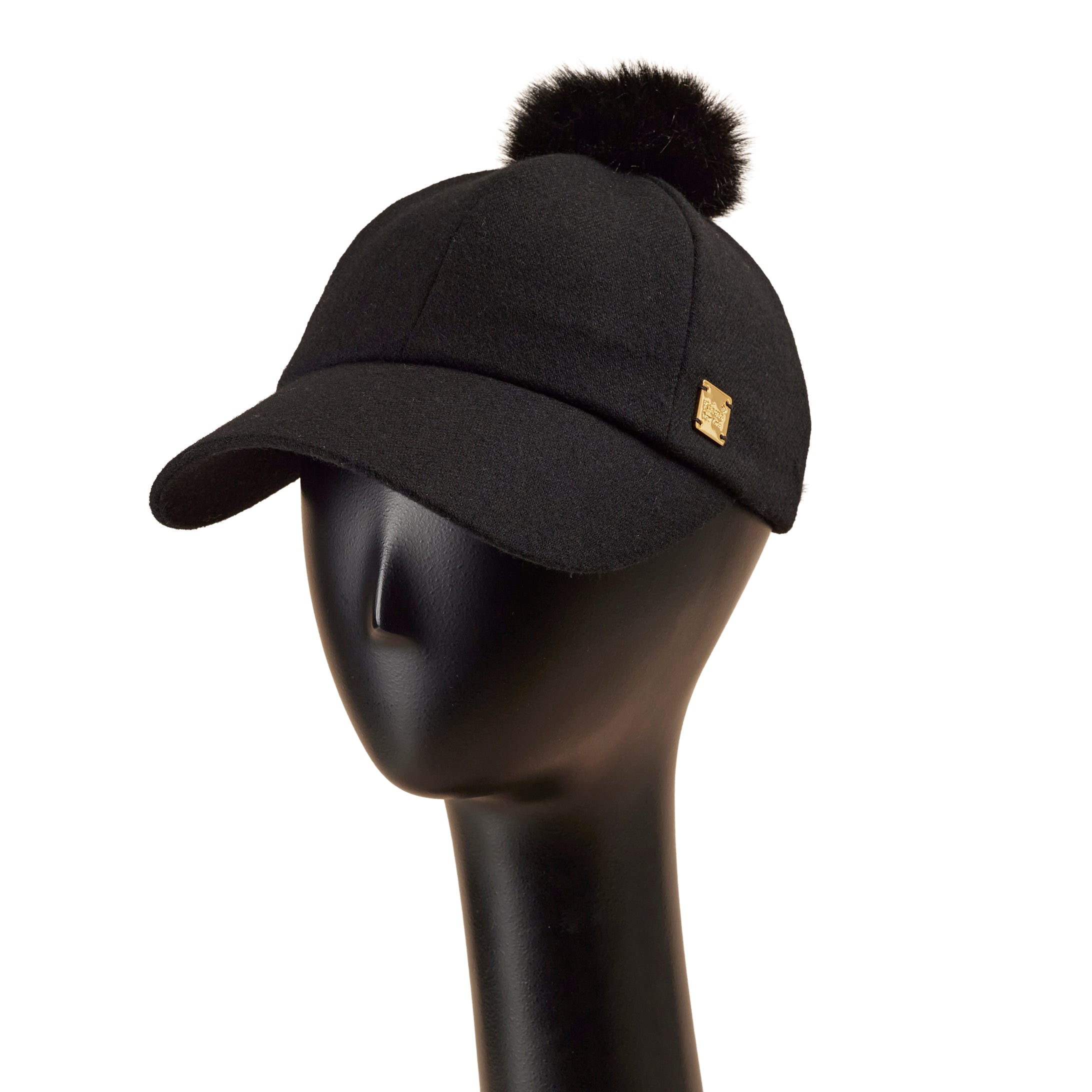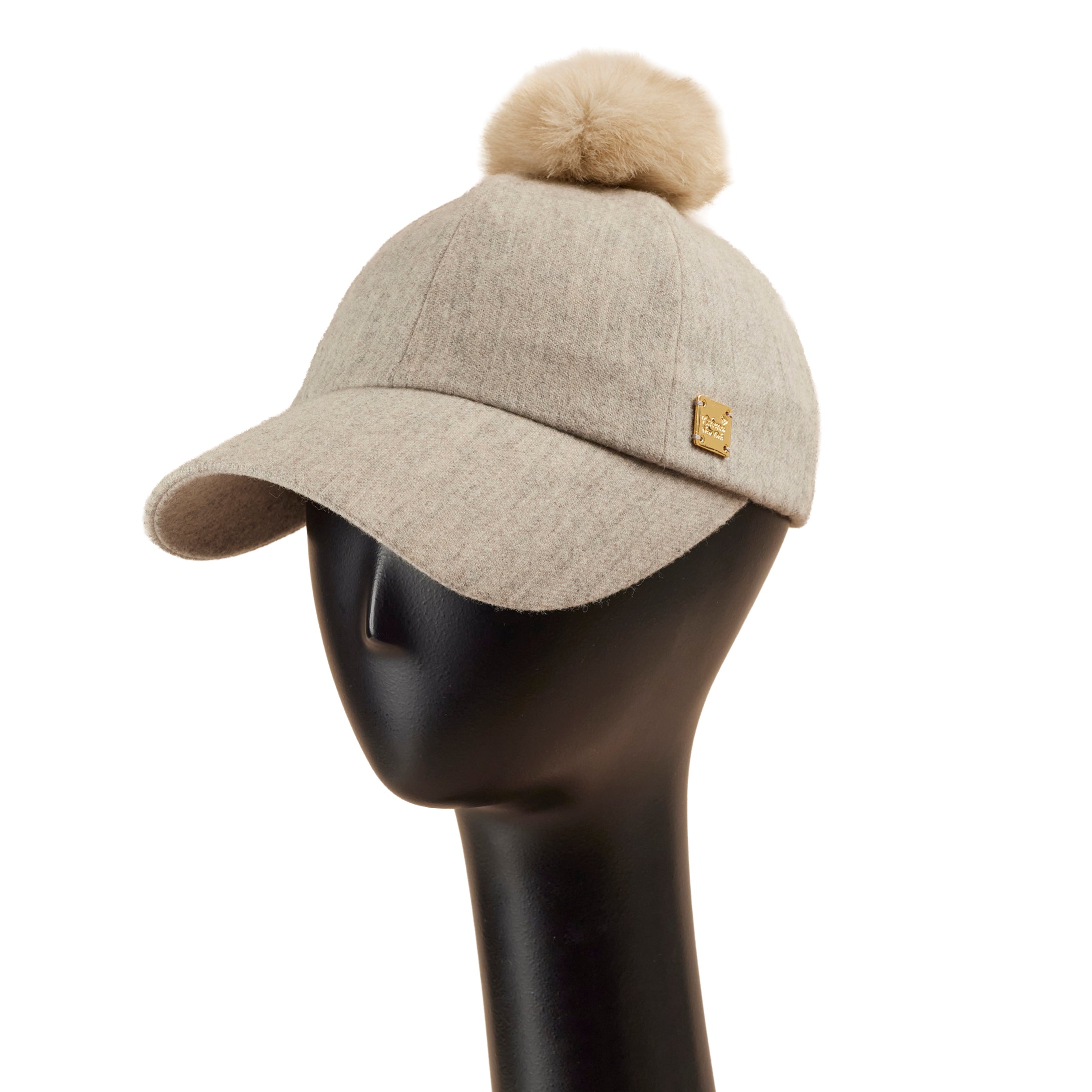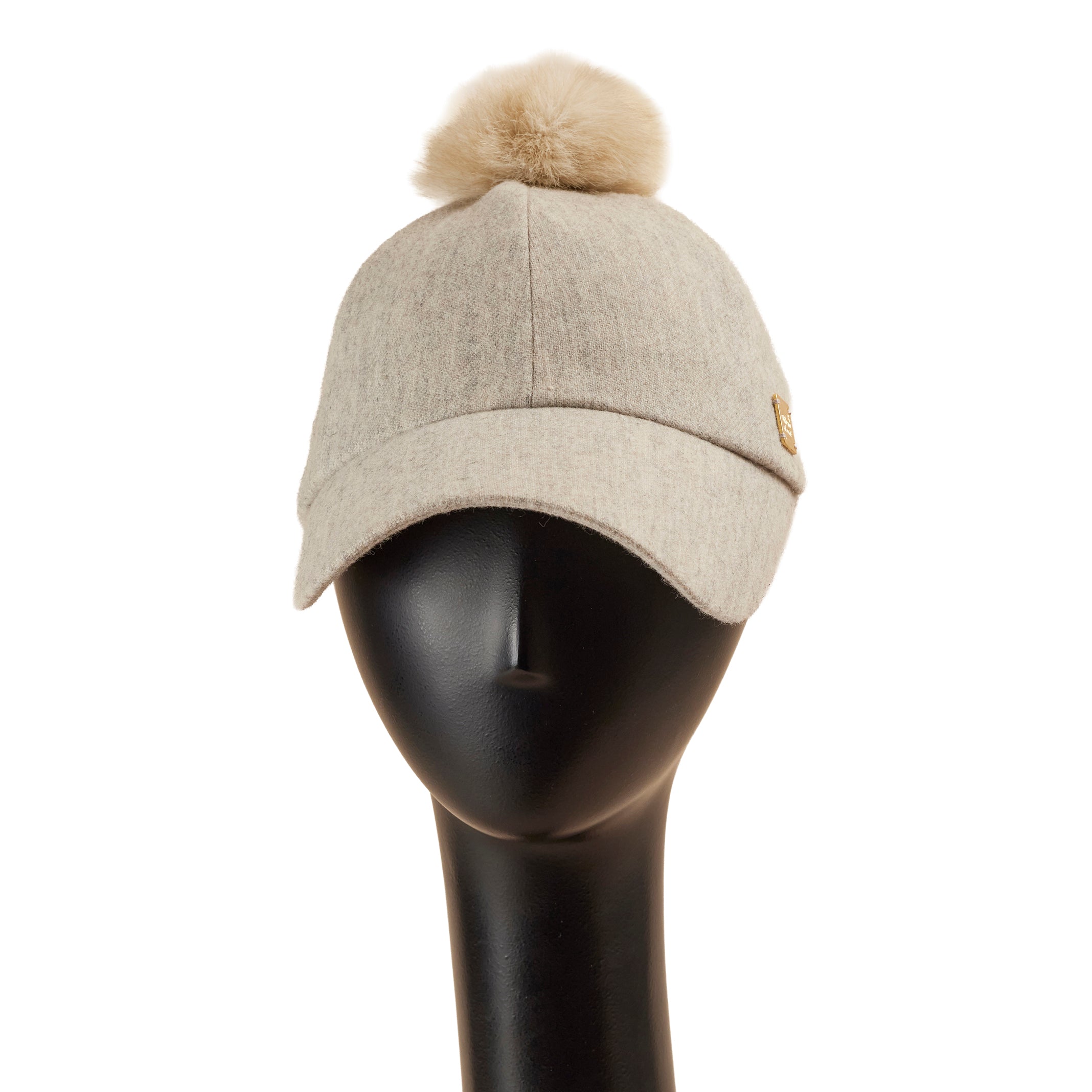 トップと後頭部にファーをあしらった、少しカジュアルなデザインのキャップ型帽子。
