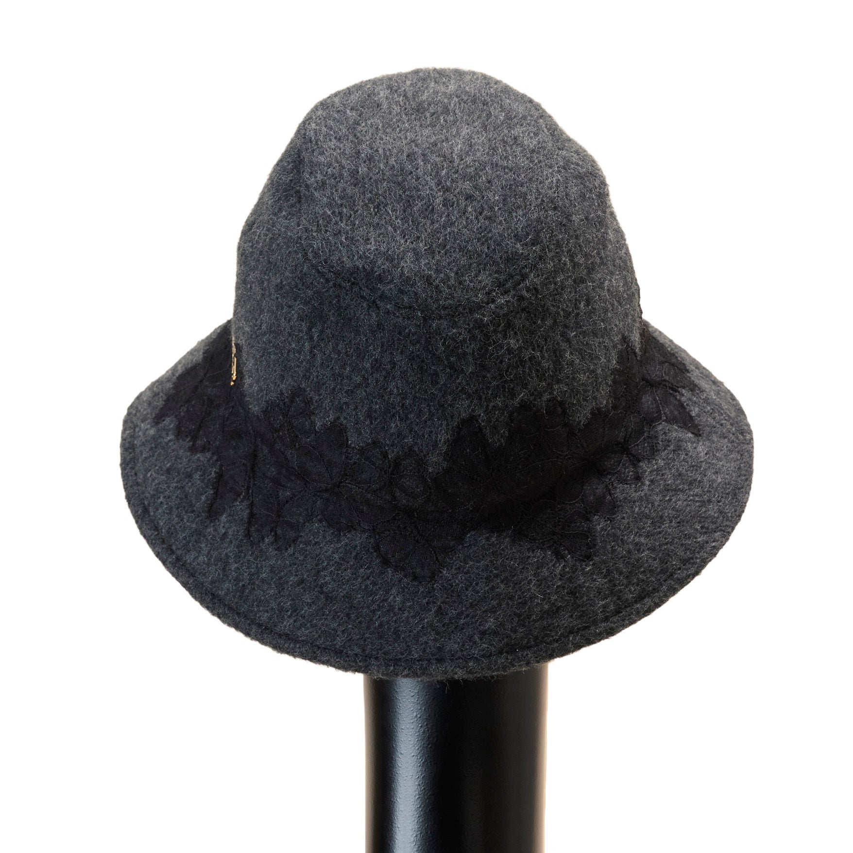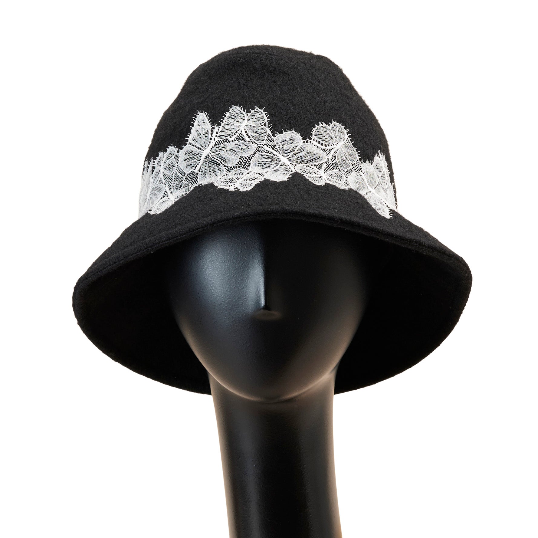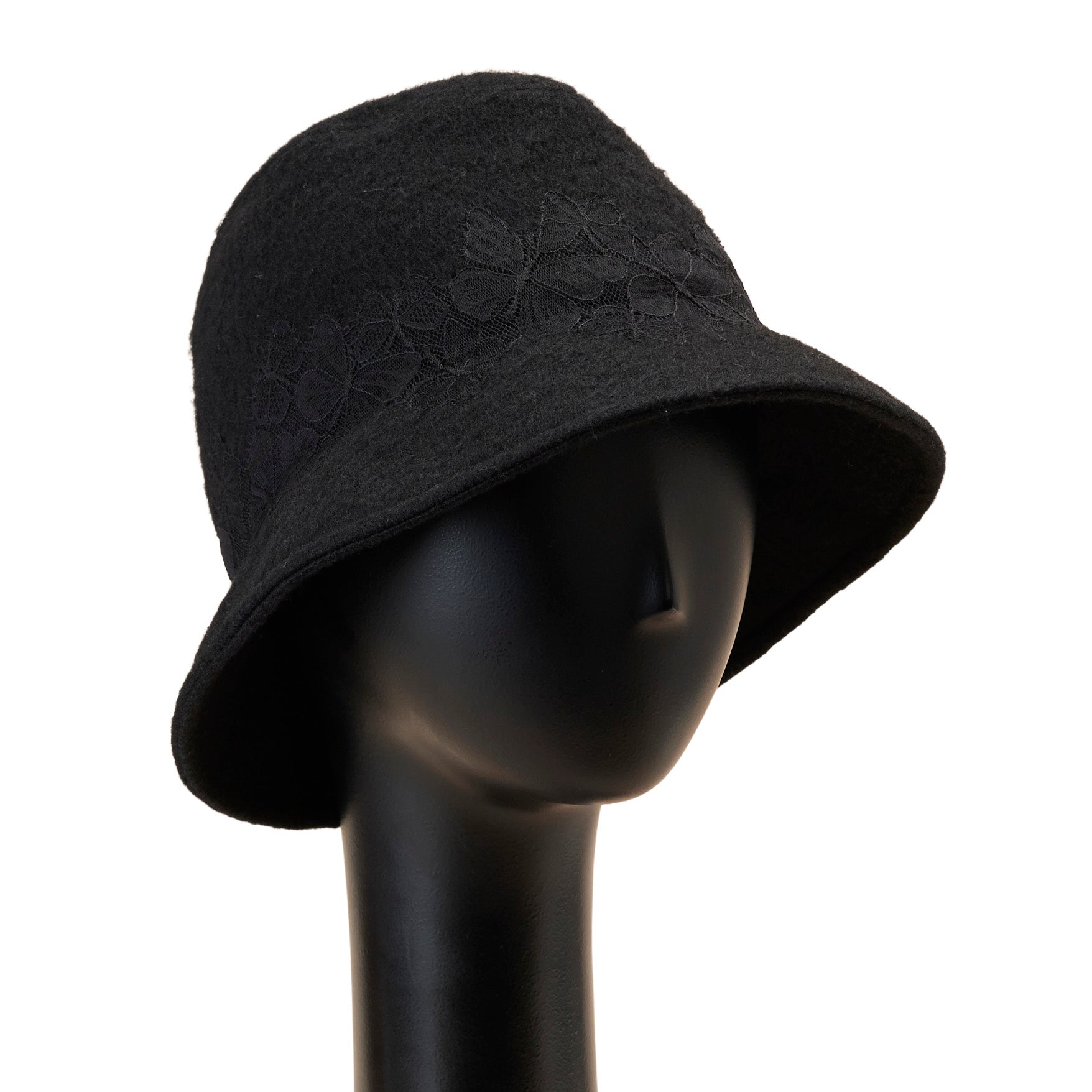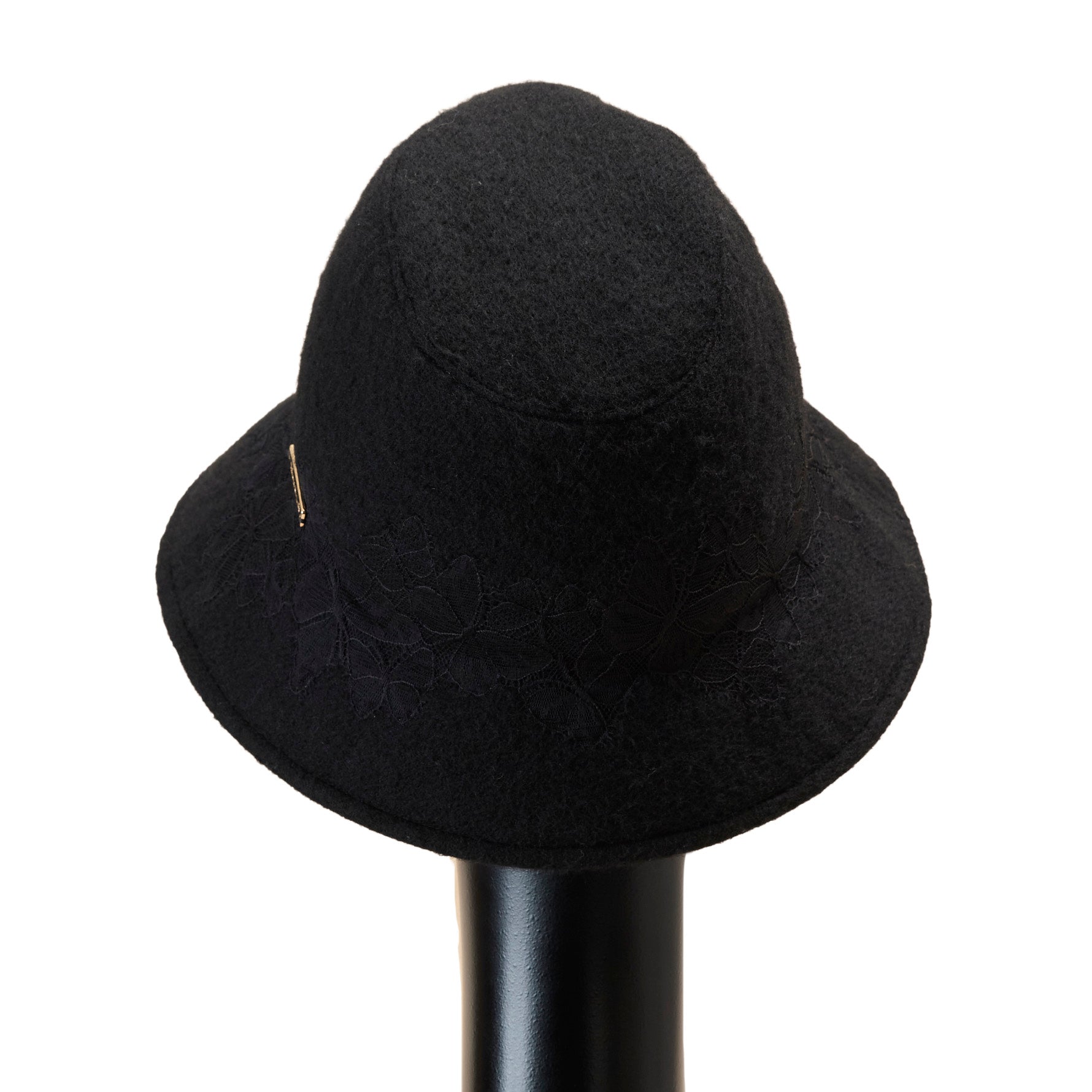 ブリムの短いクロシェ型のメンズライクな帽子本体に、蝶々をモチーフにした透け感のあるリボン状のレースを頭回りにアタッチ。マニッシュな帽子に華やかさをプラスした大人な帽子です。