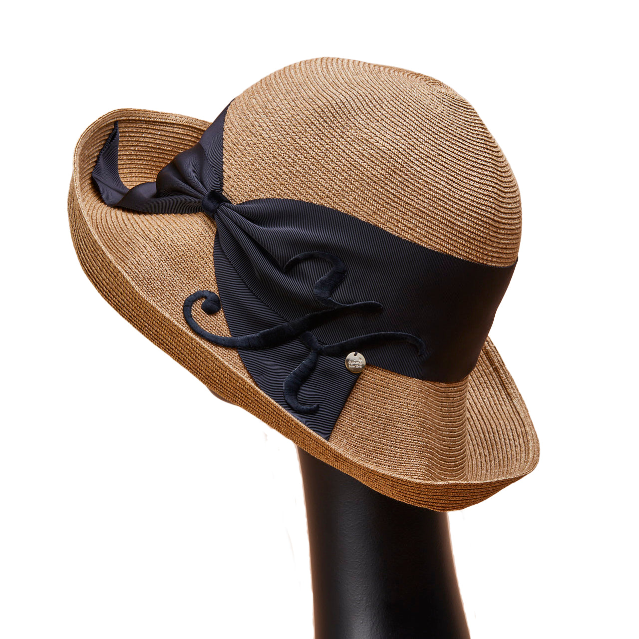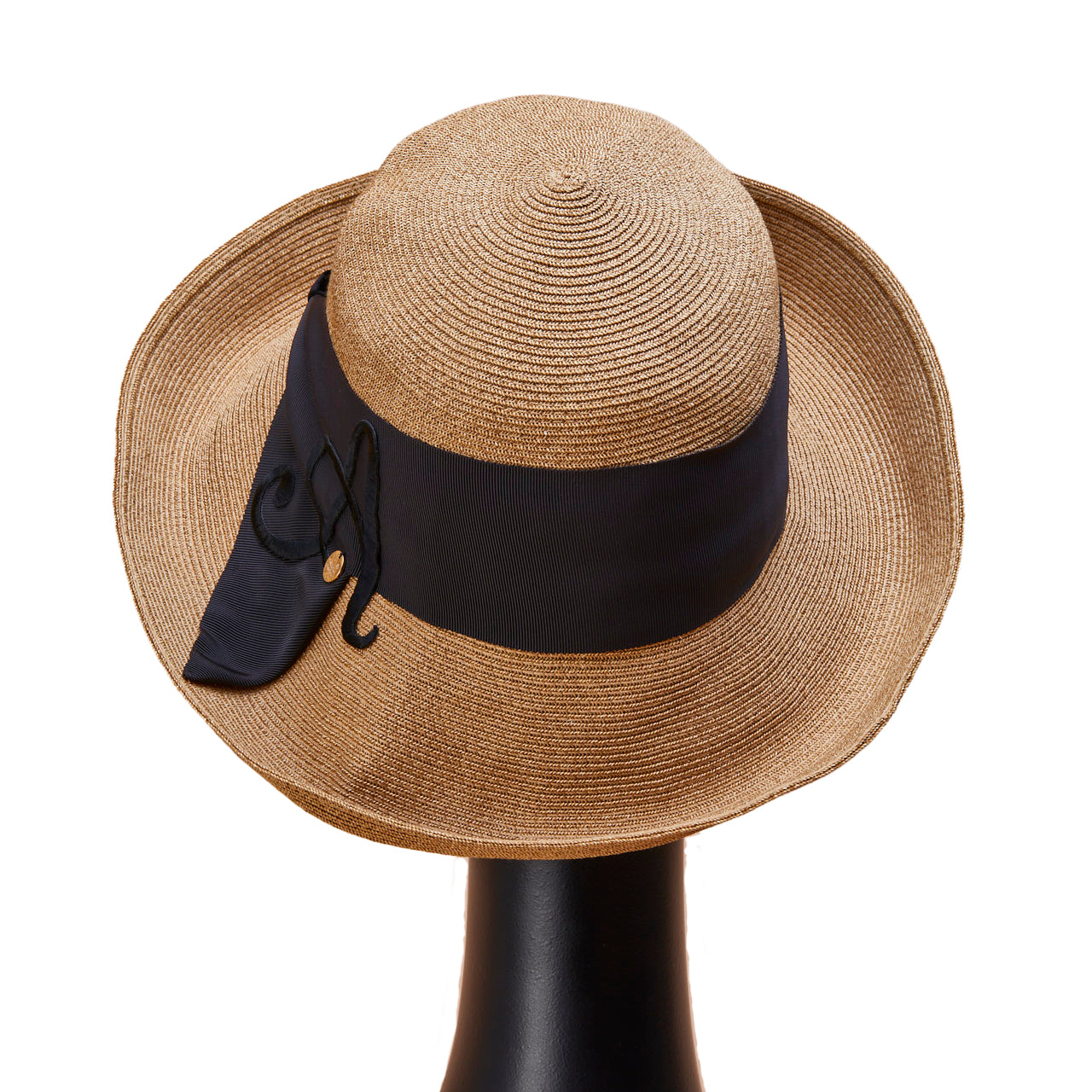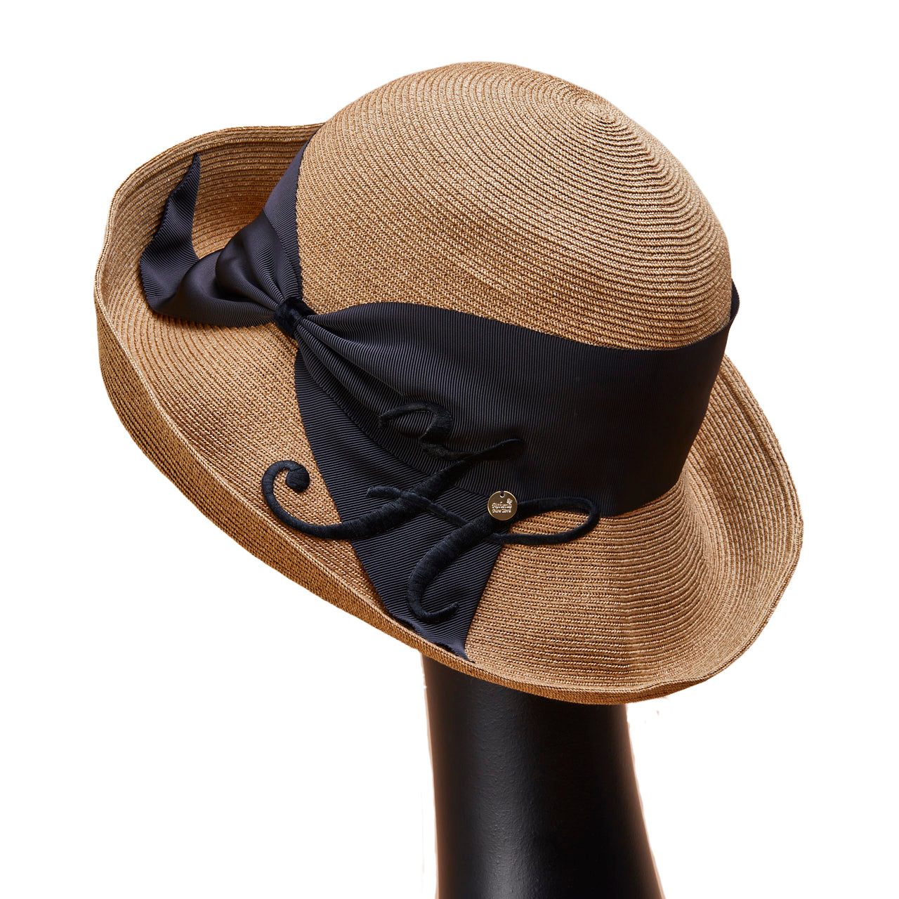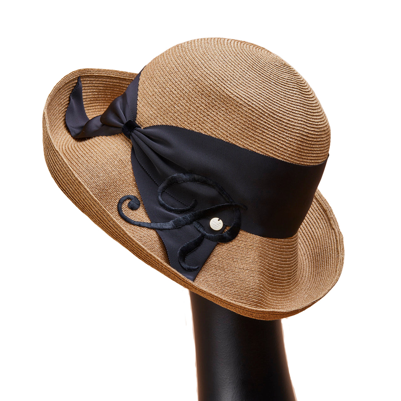 Athena New York "Official Online Shop" 限定のイニシャル付きRisako/リサコ。リサコ(帽子の名前)の白色リボンと黒色リボンに、好きなイニシャルを1文字装飾できます。イニシャルにはA・E・H・K・M・N・R・S・T・Yの10文字から選べます。リボンと同色の大きなイニシャルは、光沢があり気品を感じられるフォントデザイン。自分用としても、大切な方へのプレゼントとしても、喜ばれる事まちがいないスペシャル帽子。
