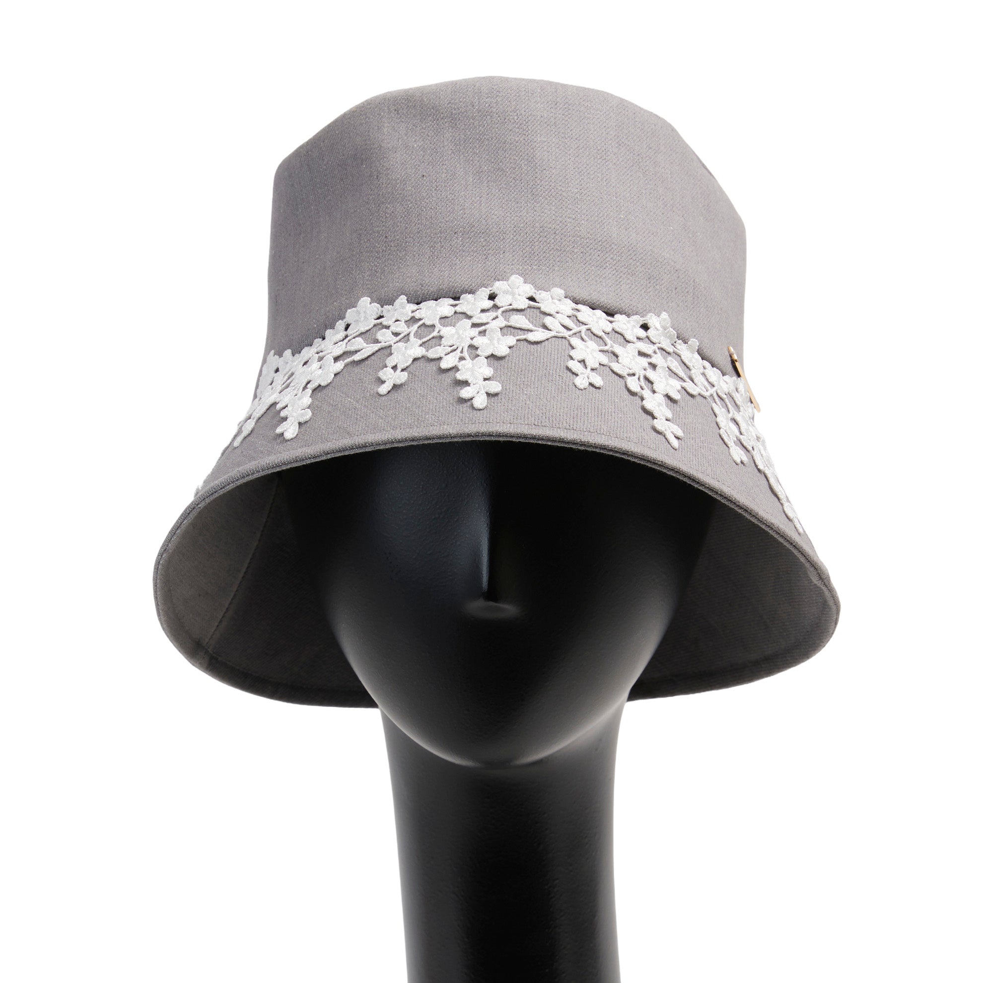 岡山県産のデニム生地を使って製作したバケット型の帽子本体に、小花モチーフのとても繊細なレースを頭回りにあしらった可憐な帽子です。とても細かいフラワーレースのさりげなさが上品さを演出。パンツスタイルからワンピーススタイルまで、様々なコーディネートに合わせやすいデザインです。